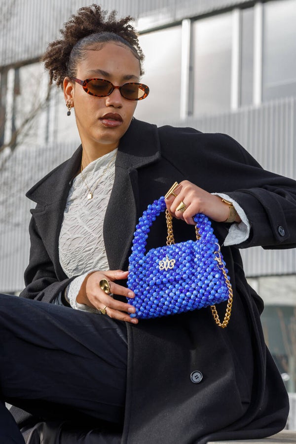 Avec son bleu profond sublimé par des fleurs orange vibrantes, Azura Bloom est une pièce audacieuse qui attire immédiatement le regard. Sa texture perlée et sa silhouette raffinée apportent une touche artistique et glamour à chaque tenue.
